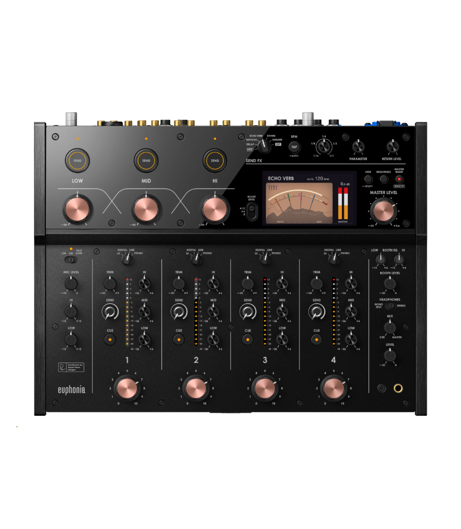 Professional 4 channel rotary mixer the euphonia produces a euphoric sound with the clarity of digital and the richness of analog that’s never been heard from a dj mixer before