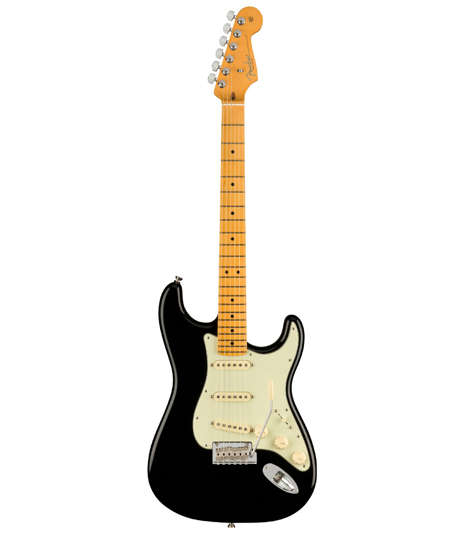 Electric guitar, 6 string, maple fingerboard, black the american professional ii stratocaster® draws from more than sixty years of innovation, inspiration and evolution to meet the demands of today’s working player. Our popular deep “c” neck now sports smooth rolled fingerboard edges, a “super-natural” satin finish and a newly sculpted neck heel for a supremely comfortable feel and easy access to the upper register. New v-mod ii stratocaster single-coil pickups are more articulate than ever while retaining bell-like chime and warmth. An upgraded 2-point tremolo with a cold-rolled steel block increases sustain, clarity and high-end sparkle. The american pro ii stratocaster delivers instant familiarity and sonic versatility you’ll feel and hear right away, with broad ranging improvements that add up to nothing less than a new standard for professional instruments