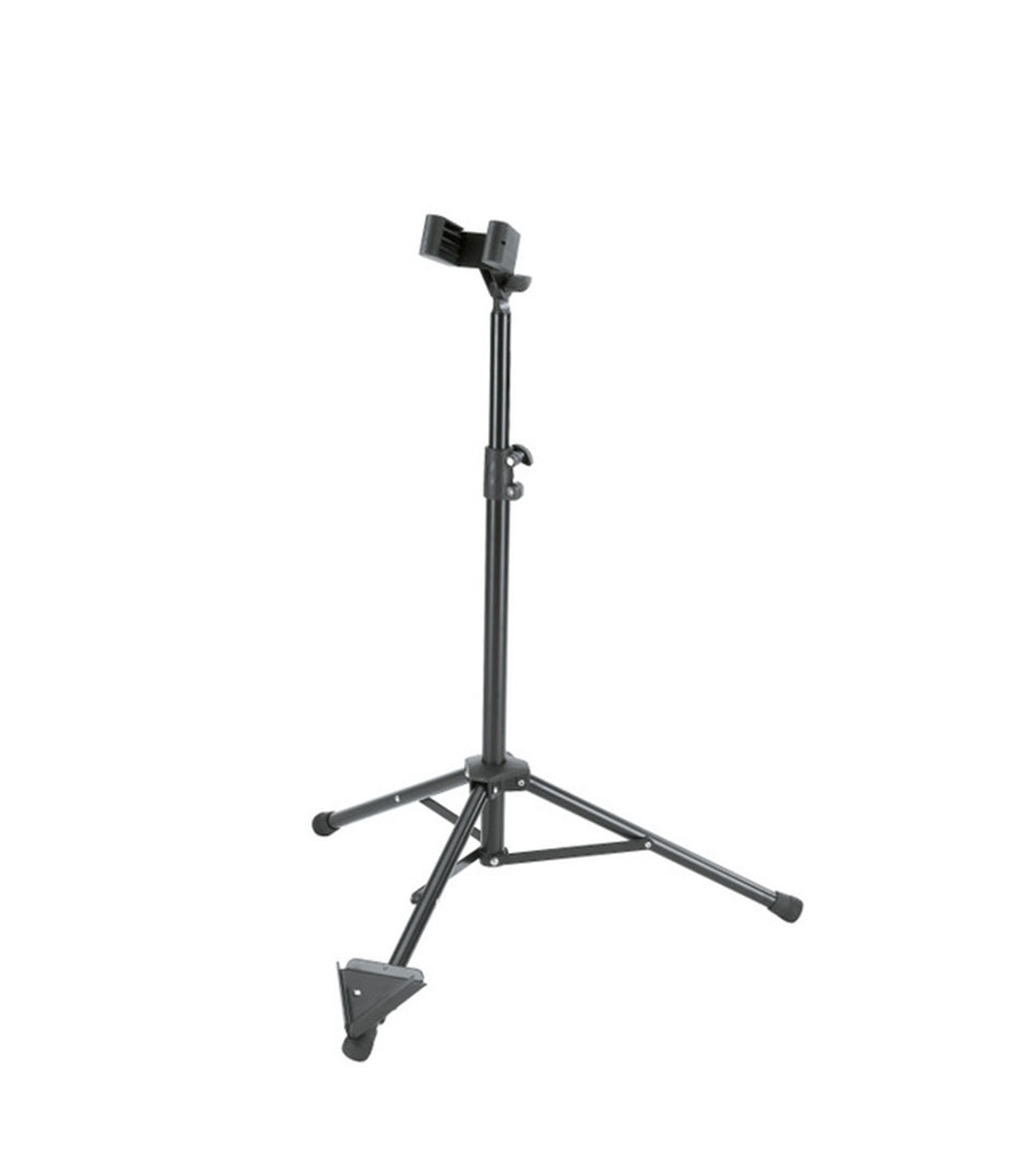 The universal support bracket can be adjusted in tilt and width. The support bracket can be adjusted to the individual instrument by converting the removable rubber pads. The newly designed v-shaped base for the endpin means it is easy to position the instrument in the stand. The stand is easy to fold compactly for transport