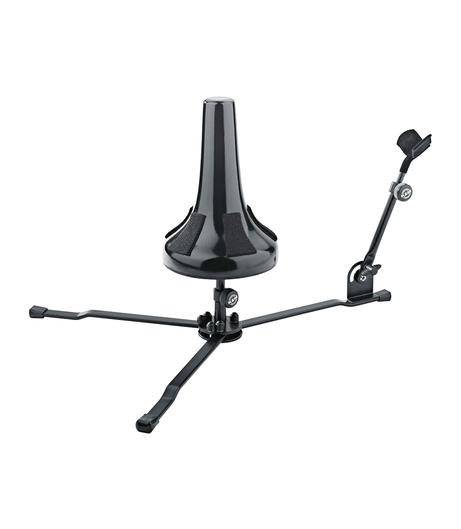 For french horn and french shaped eb horn. Adjustable side support. Wooden peg with felt pads to protect the instrument. Foldable base
