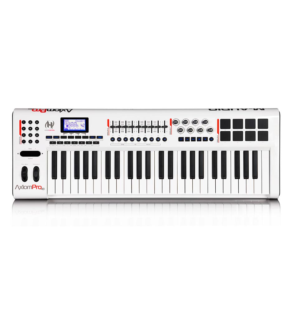 The m-audio® axiom® pro 49 keyboard controller builds on the acclaimed axiom 49 with premium trutouch™ action, proprietary hypercontrol™ midi mapping technology and other cutting-edge enhancements. Hypercontrol automatically maps the keyboard’s 65 controls to commonly accessed parameters in digital audio workstations including pro tools®, cubase, logic and reason*, as well as software instruments. The constant two-way link with your host daw means the keyboard’s controls are always in sync with your software’s active parameters. The intuitive graphic lcd constantly updates the current values, which ensures seamless editing and prevents parameter jumps—even when plug-ins are closed