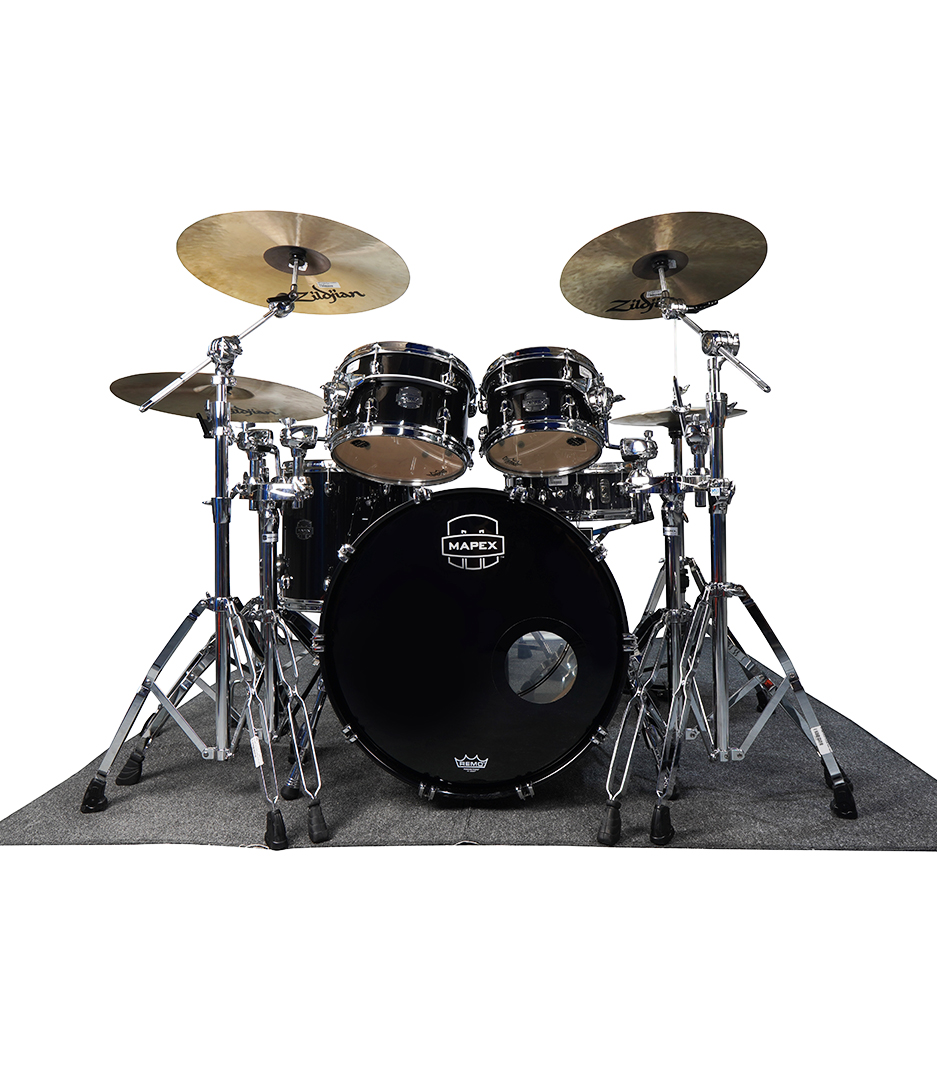 Saturn Evolution Maple; Piano Black-5pc Drumkit. Bass drum, floor tom, 2 rack toms, snare, ride, 2 crashes and hi-hat cymbals. Shell sizes are customizable upon request