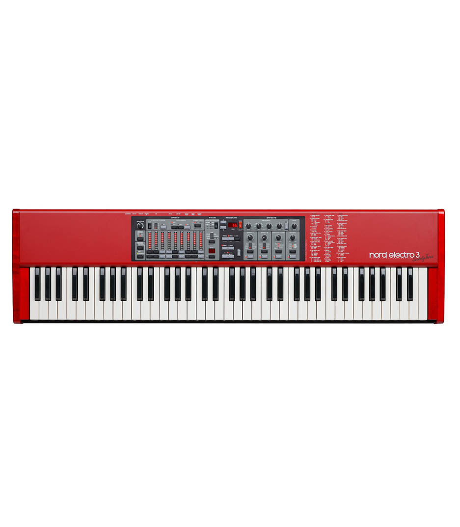 73 keys the electro 3 features a great organ section, fantastic pianos from the nord piano library, nord sample library compatibility, including the possibilty to create your own sample instruments and a selection of extremely versatile effects!