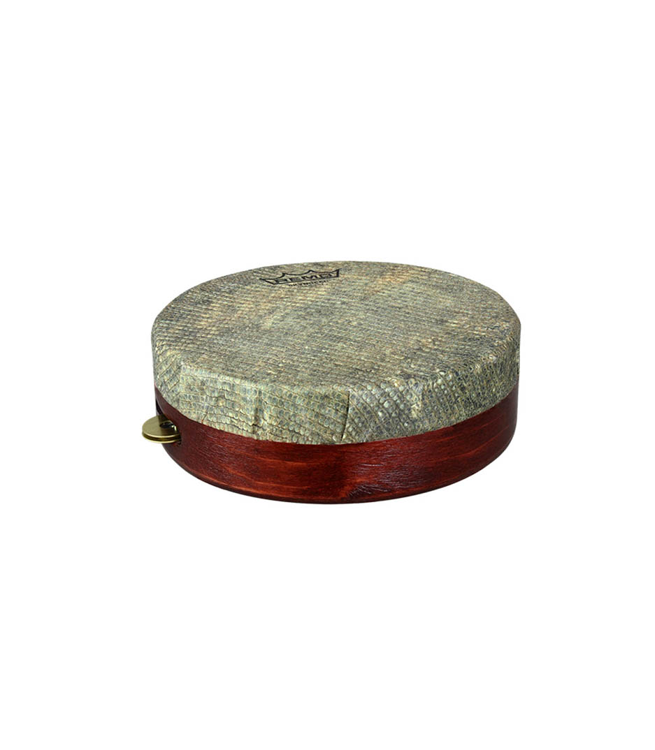 The traditional kanjira features the authentic sound of the original south indian kanjira with enhanced low frequencies and crisp slap tones. Constructed with an acousticon shell, a synthetic skyndeep lizard skin graphic drumhead, a 1-inch flat jingle set and a 30-degree radial bearing edge. The traditional kanjira can be tuned easily by inserting a 5/64