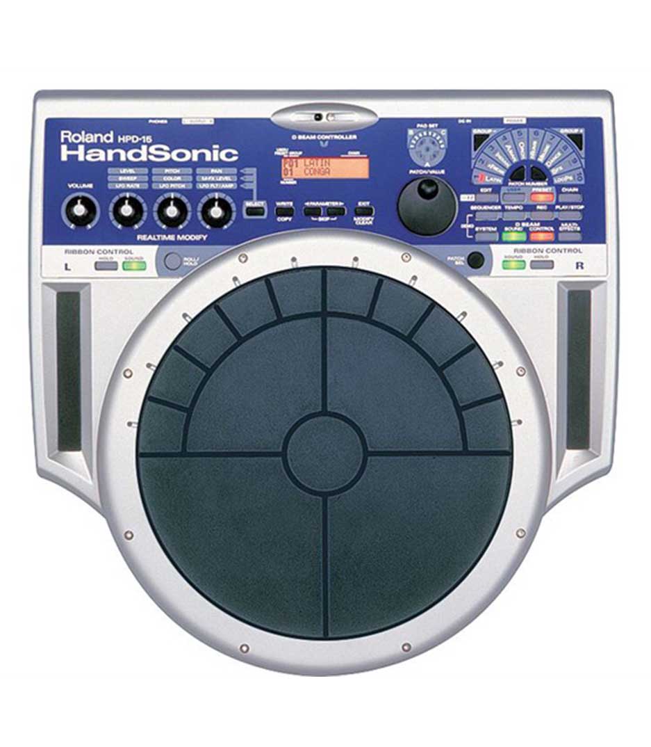 The hpd-15 handsonic is an electronic hand percussion multi-pad with triggering capabilities derived from breakthrough v-drums technology. Divided into 15 parts, the hpd-15 allows hand percussionists to play up to 600 realistic acoustic and electronic percussion sounds–15 simultaneously–with all the sensitivity that the roland v-drums are famous for