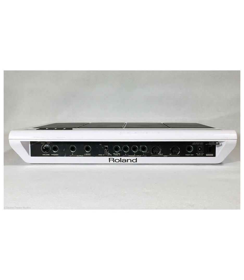 Output (l/mono ,r) ,phones (stereo) ,external trigger inputs ×3 (dual) ,hi-hat control/trigger4 input (dual) ,midi in/out ,footswitch (dual) ,ac in — trigger inputs 1 & 2 support rim shots from pd-7 ,-8 ,-9 ,-80r ,-105 ,-120 ,and -125. |