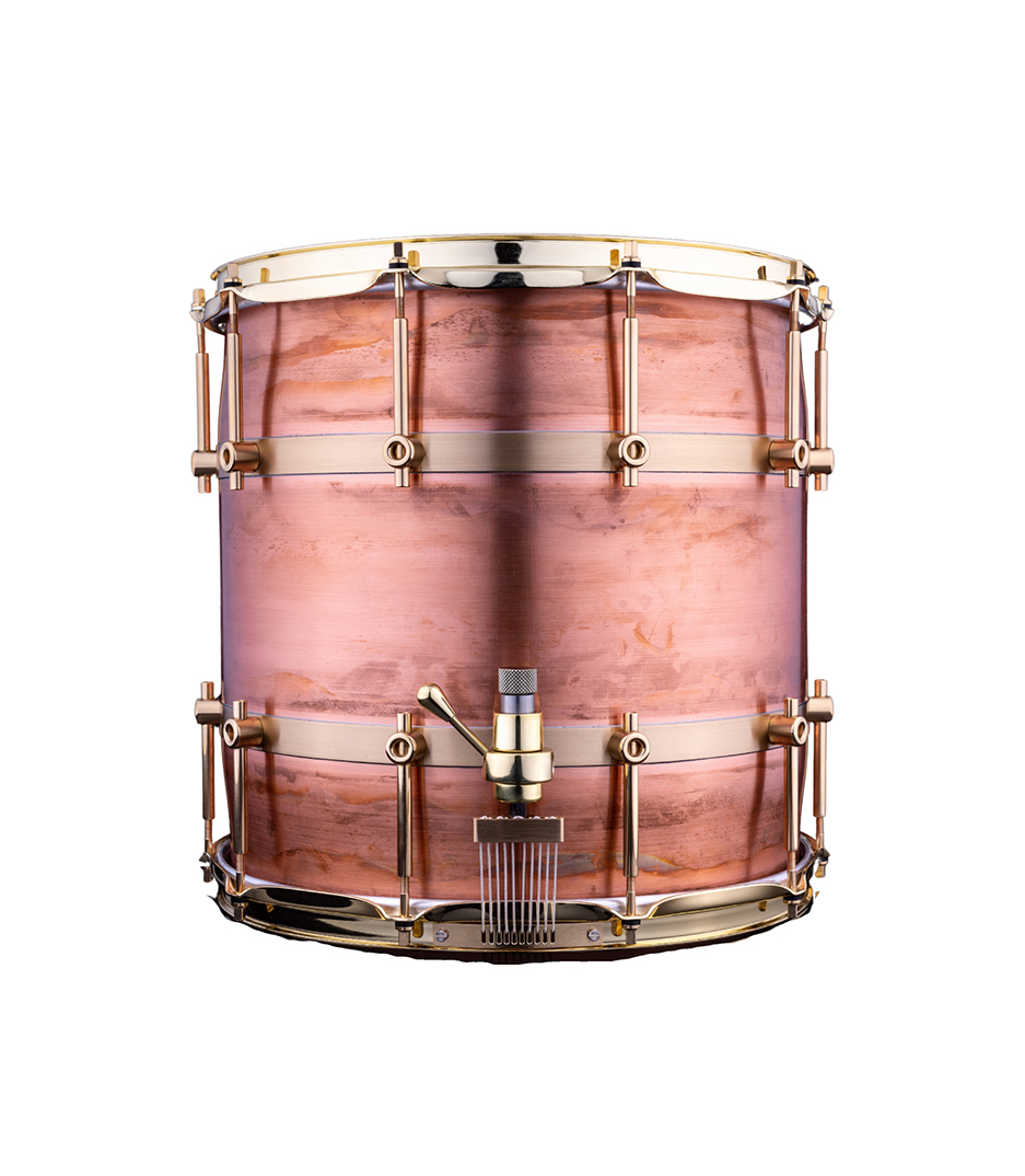 The orchestral drum – rührtrommel is a 7-piece hybrid copper drum with a unique design combining convex and cylindrical shell segments, producing a timpani-like resonance and deep harmonic overtones. The sd modified trickdrums multi-step strainer offers precise tension adjustments, making it ideal for orchestral settings. Its raw copper shell retains a striking appearance, enhancing both its visual and acoustic appeal