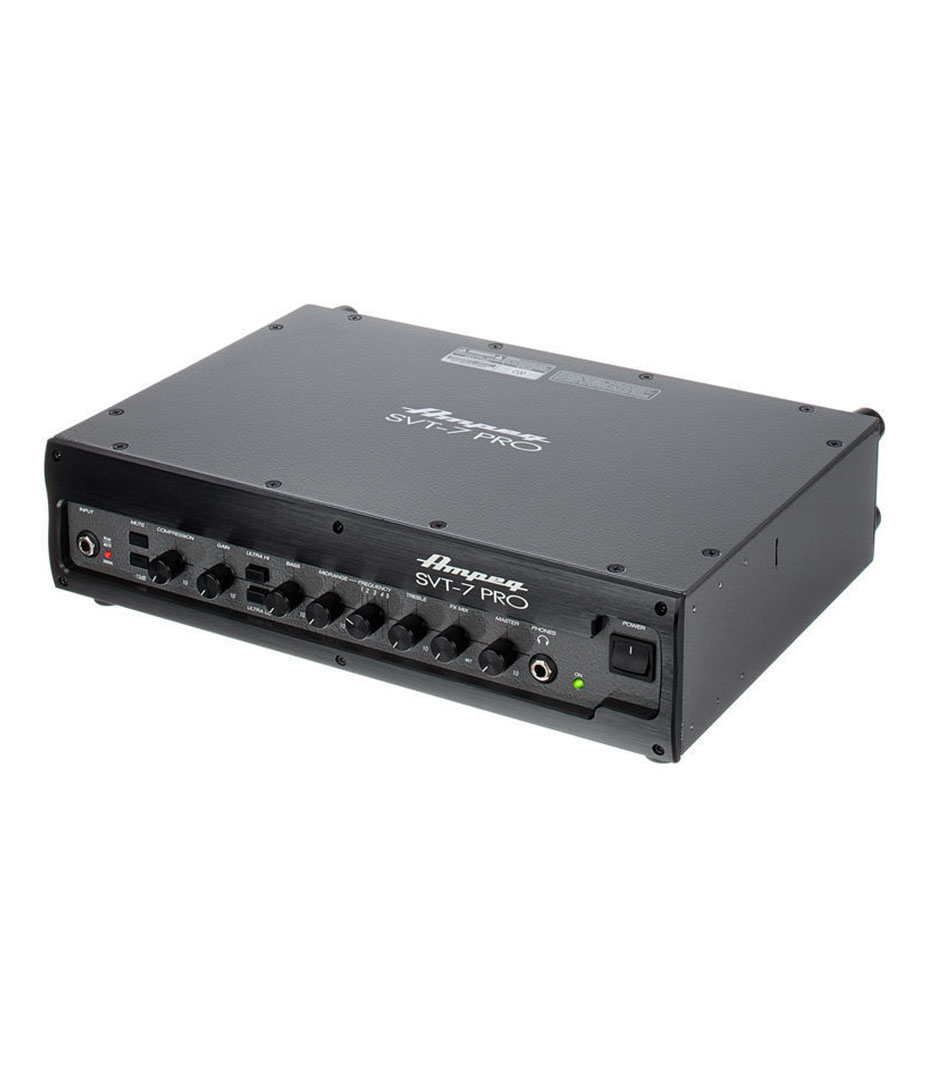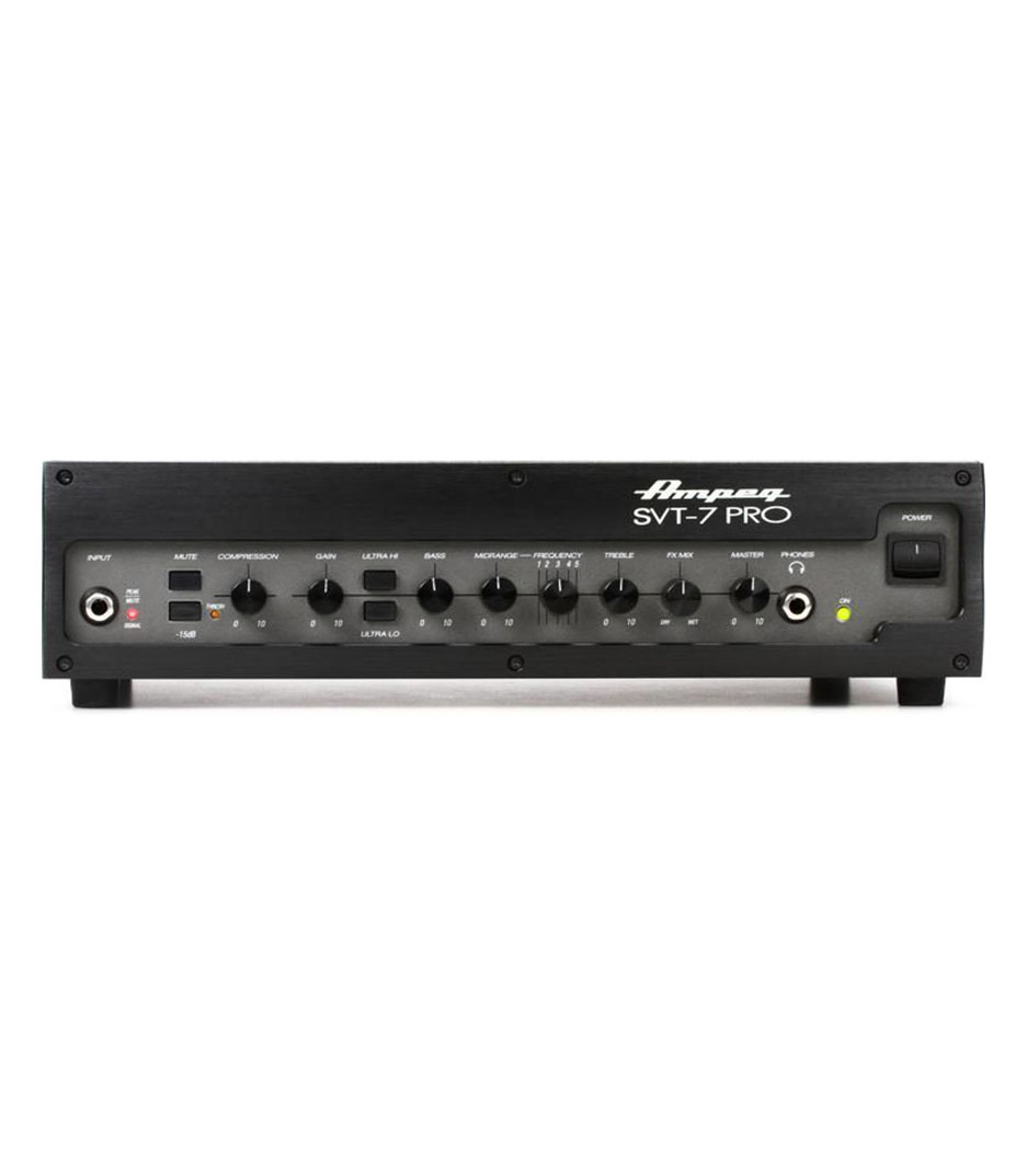 Bass amplifier head; 1000 watts ; pro series bass players need more wattage to cut through the mix. Those lower frequencies are harder to push, so ampeg has come up with the svt 7 pro. Pushing 1000 watts at 4 ohms, the svt 7 pro is sure to give you enough volume and then some. Extremely flexible tone controls featuring a 5-position mid tone control, ultra-low and ultra-high switches, and a tube preamp let you dial in the warm, fat tones you crave. The built-in headphone jack gives you the option to practice late into the night without bothering the neighbors. The speakon and 1/4″ connectors give you flexibility in choosing and using speaker cabs