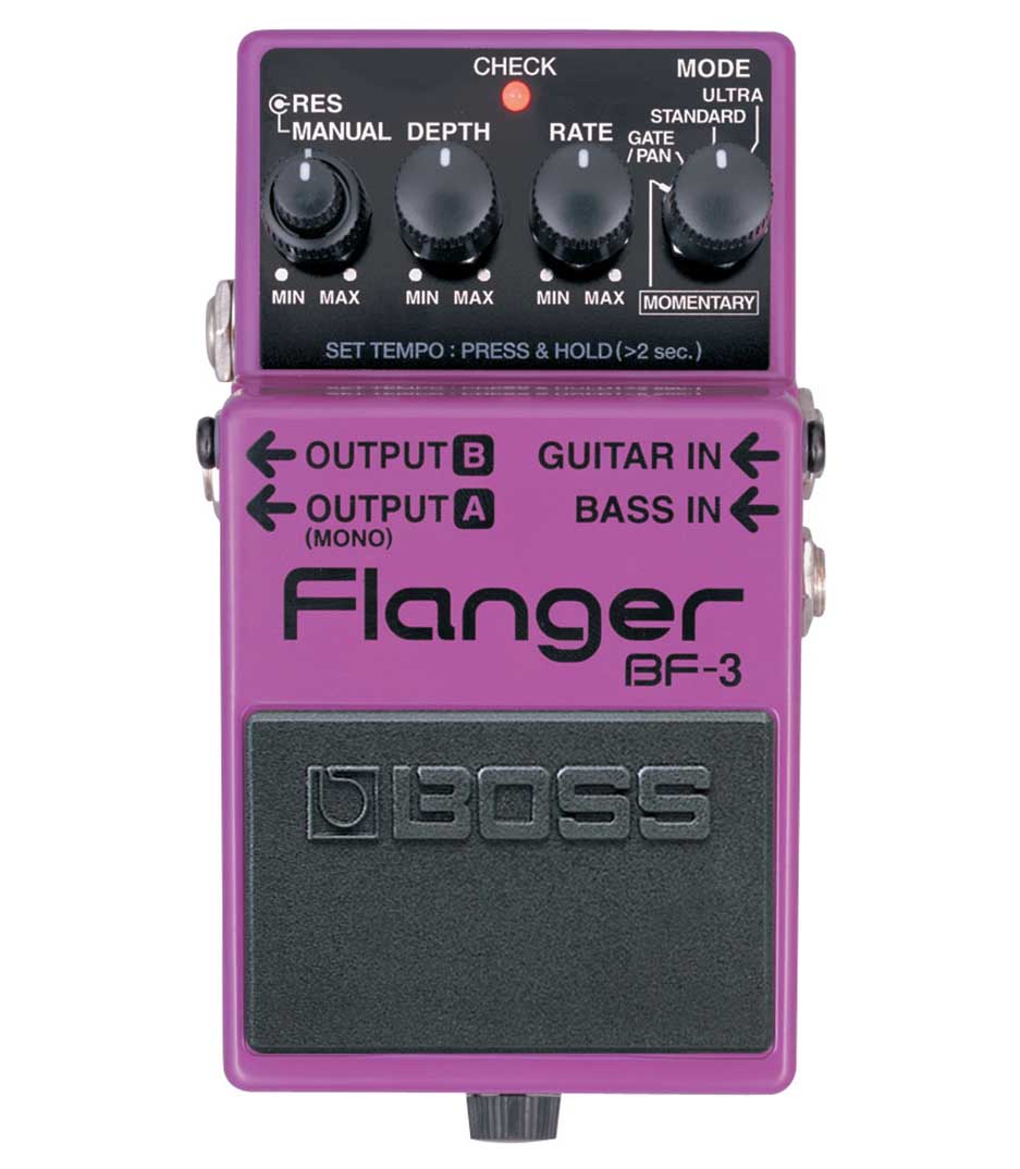 Building on the 20-year legacy of the famous boss bf-2, the new bf-3 flanger pedal gives guitarists and bassists an updated version of the classic boss flanger with the thickest stereo flanging sounds ever. Two new modes (ultra and gate/pan) create stereo flanging with incredible depth–even slicer-type effects and sounds that seem to” swirl” around the listener. An instant classic