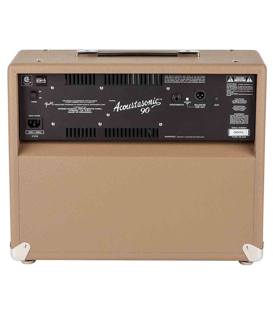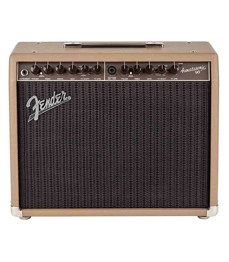 Acoustic guitar combo, 1 x 8″, 90w fender’s acoustasonic 90 combo acoustic guitar amplifier has all the features you need to get through any acoustic gig in style. The acoustasonic 90 combo is perfect for singer/songwriters too, thanks to its separate microphone and instrument inputs. You can plug in both your instrument and a microphone, for an instant solo pa. Or, plug instruments into both channels. You get great-sounding effects, and a balanced line out for more flexibility. Feeback-elimination controls keep the 90-watt acoustasonic 90 sounding great even at higher levels