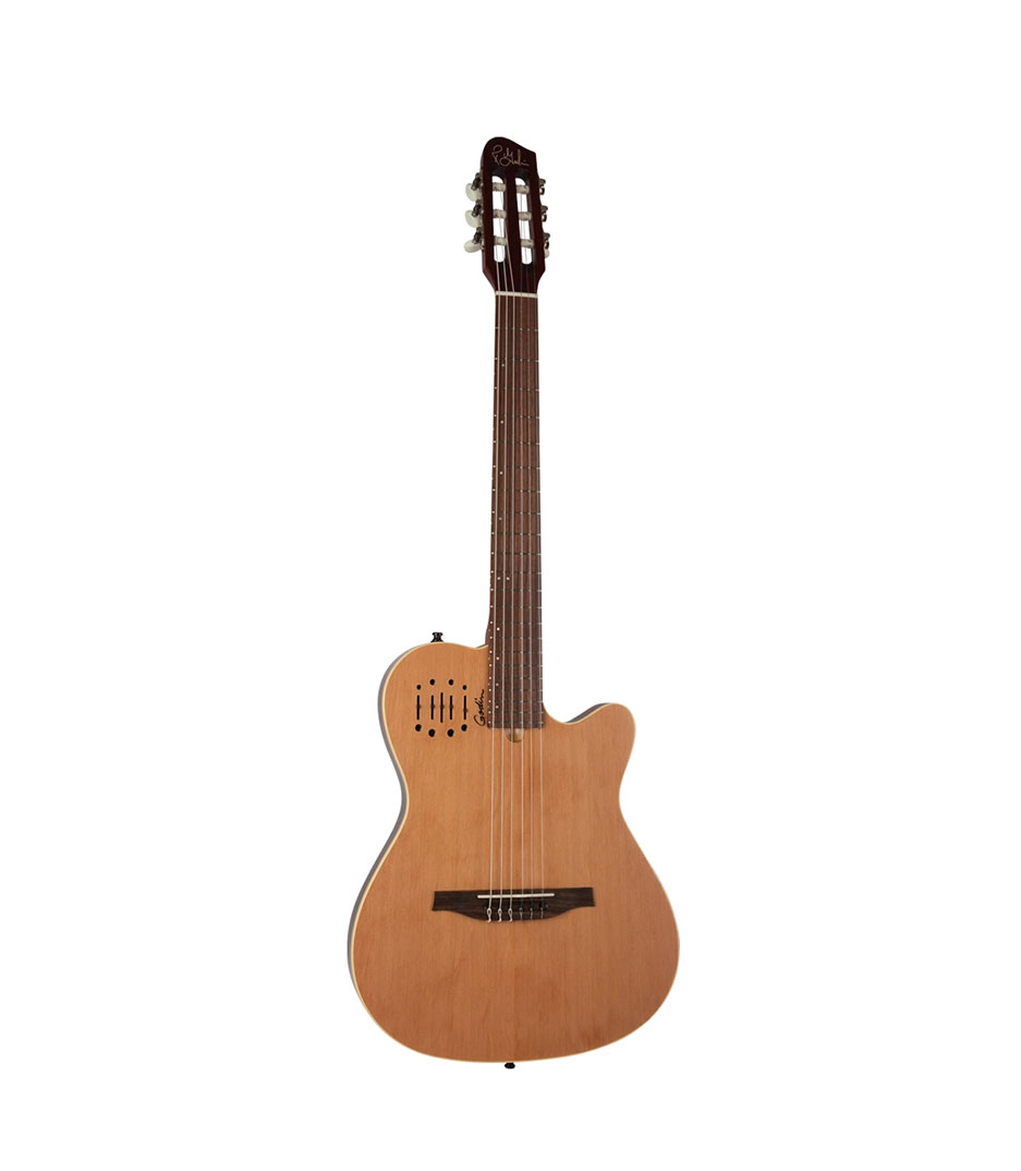 Godin multiac nylon encore, 6 strings, nylon string, natural the multiac encore is equipped with custom electronics by godin epm electronics. This easy-to-use blendable dual source system features an undersaddle transducer, as well as an acoustic soundboard transducer; both can easily be blended with one another
