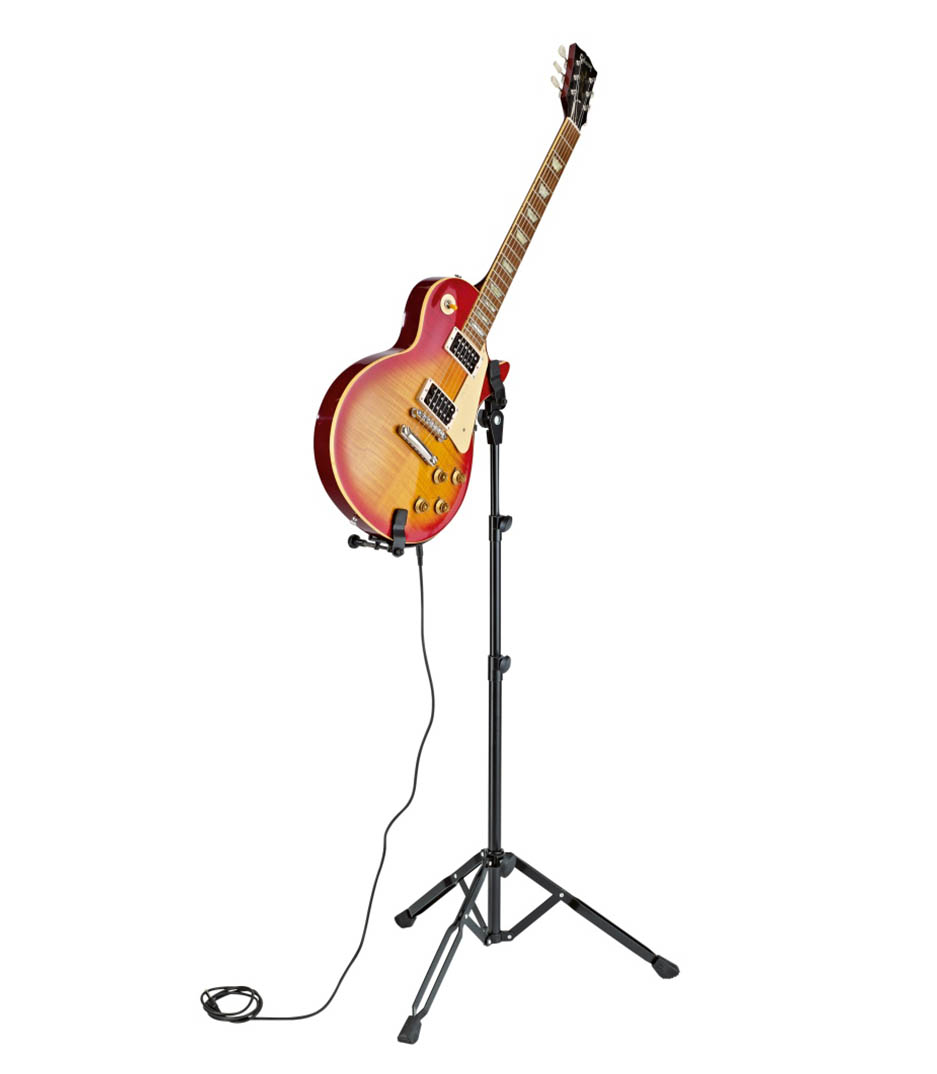 For electric guitars, for convenient playing. 2-way height adjustment. Felt-lined instrument support arm. Angle and length adjust to your needs