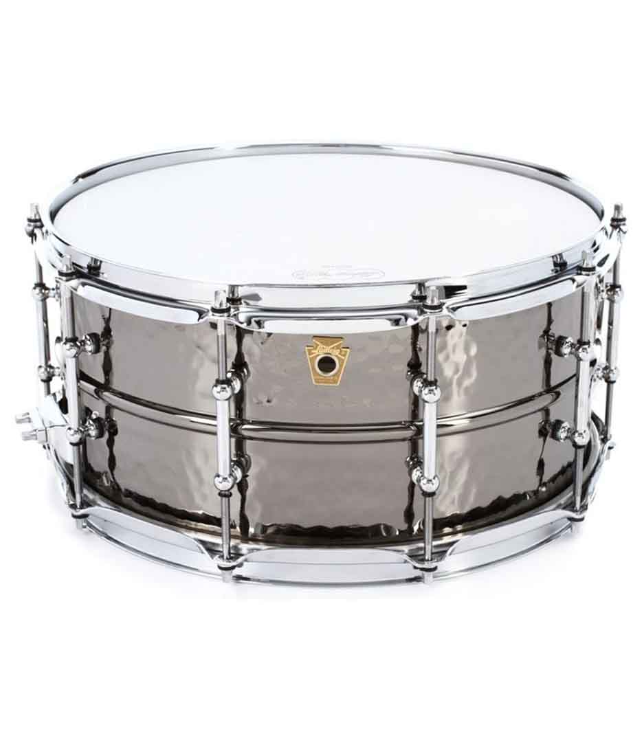 Ludwig black beauty snare 14″ x 6.5″ one of the primary reasons ludwig is” the most famous name in drums” is the legendary black beauty snare drum. The drum is constructed of a single sheet of brass that is machine drawn and spun into a seamless beaded shell, then nickel-plated and hammered for a beautifully exquisite finish. A true american original, the black beauty provides a warm, round metallic tone that is often imitated, but never duplicated. And with the p85 supra-phonic strainer the black beauty responds with excellent sensitivity at all volumes