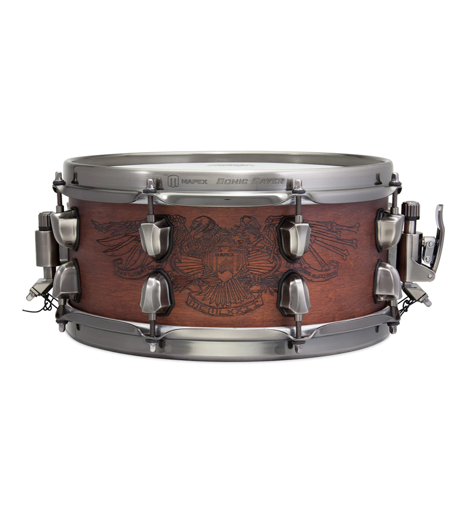 Mapex black panther chris adler warbird 12″ x 5.5″ snare, walnut/maple chris’s snare drum is custom engraved with his own warbird design and sounds as awesome as it looks. The 12” x 5 1/2” 6 ply maple / walnut shell delivers an intense, dark punch when tuned low and an explosive pop when cranked high. With addition of the soniclear™ bearing edge the sounds that this drum produces can be described as biting, powerful and quick. Also included is a personally signed picture booklet