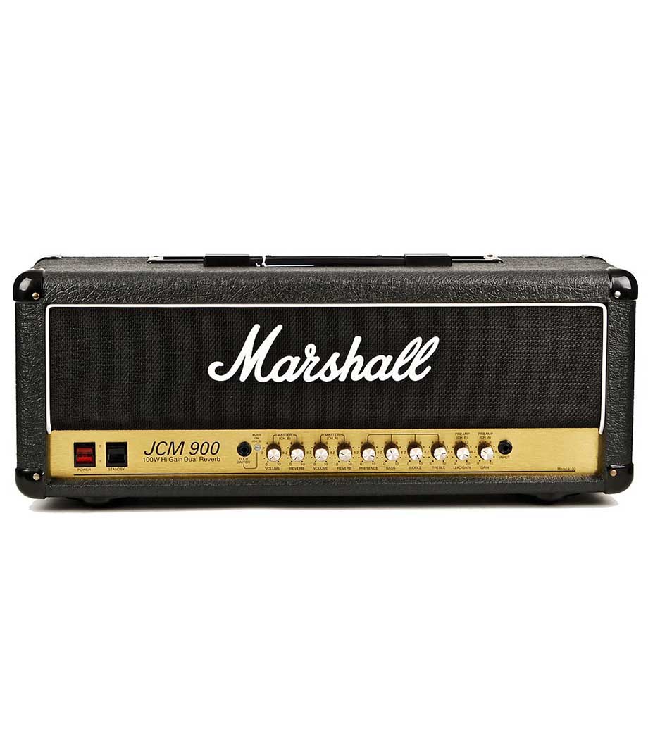 This two channel dual reverb 100w powerhouse will make you stand out on stage. A stylish reissue, the jcm900 4100tm is the evolution of the jcm800 adding another channel, two reverb options and two gain features. An amp built to go on the road and be on the stage with a sound loud enough to fill stadiums. This reissue seamlessly replicates the original with an added in series fx loop