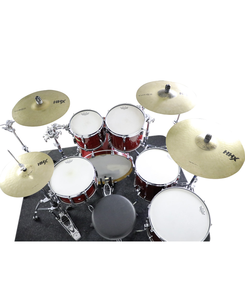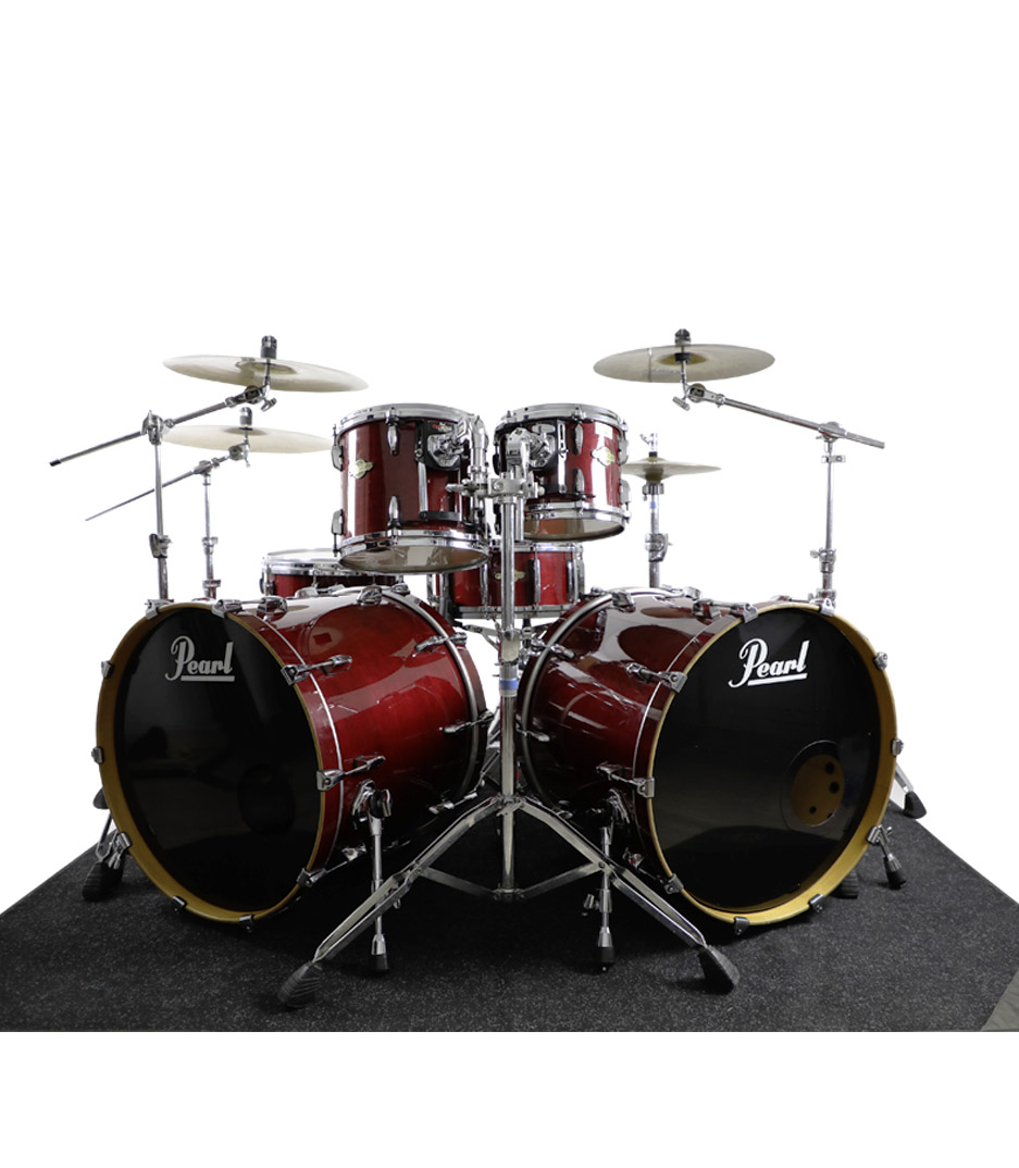 Pearl Masters MCX: Vintage Wine-6pc Drumkit. Bass drum, 2 Floor toms, 2 rack toms, snare, ride, 2 crashes and hi-hat cymbals. Shell sizes are customizable upon request