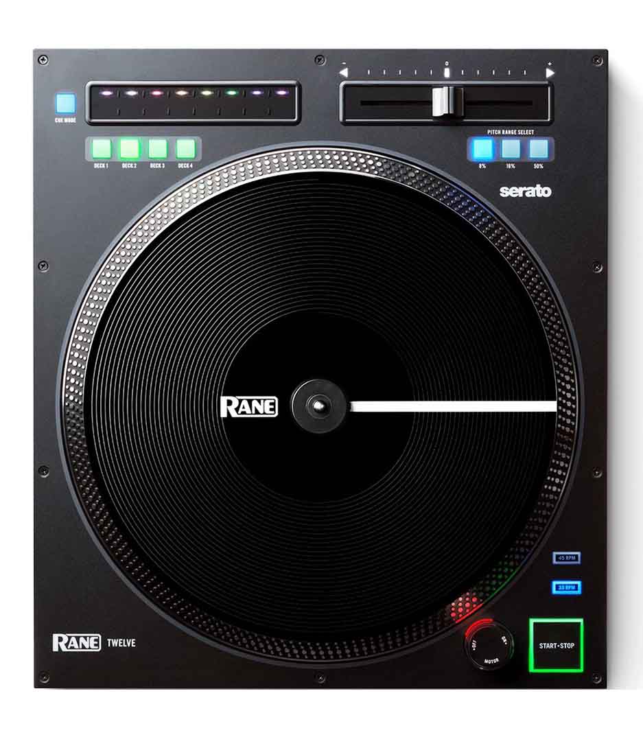 The rane twelve is a motorized control turntable that brings a seamlessly accurate, true-vinyl performance experience to digital music software. It liberates djs and turntablists from the pain of damaged tonearms or needles and eliminates unwanted audio feedback, bringing sub-bass back into their music. With no tonearm or damaged/skipping needles, the rane twelve gifts the pro, club, scratch and battle dj with a zero-error, secure and solid performance environment underpinned with an all-new new black acrylic control disc with grooves. This newly-designed control disc significantly enhances the dj experience, providing better grip, resistance to warping and more consistent slip