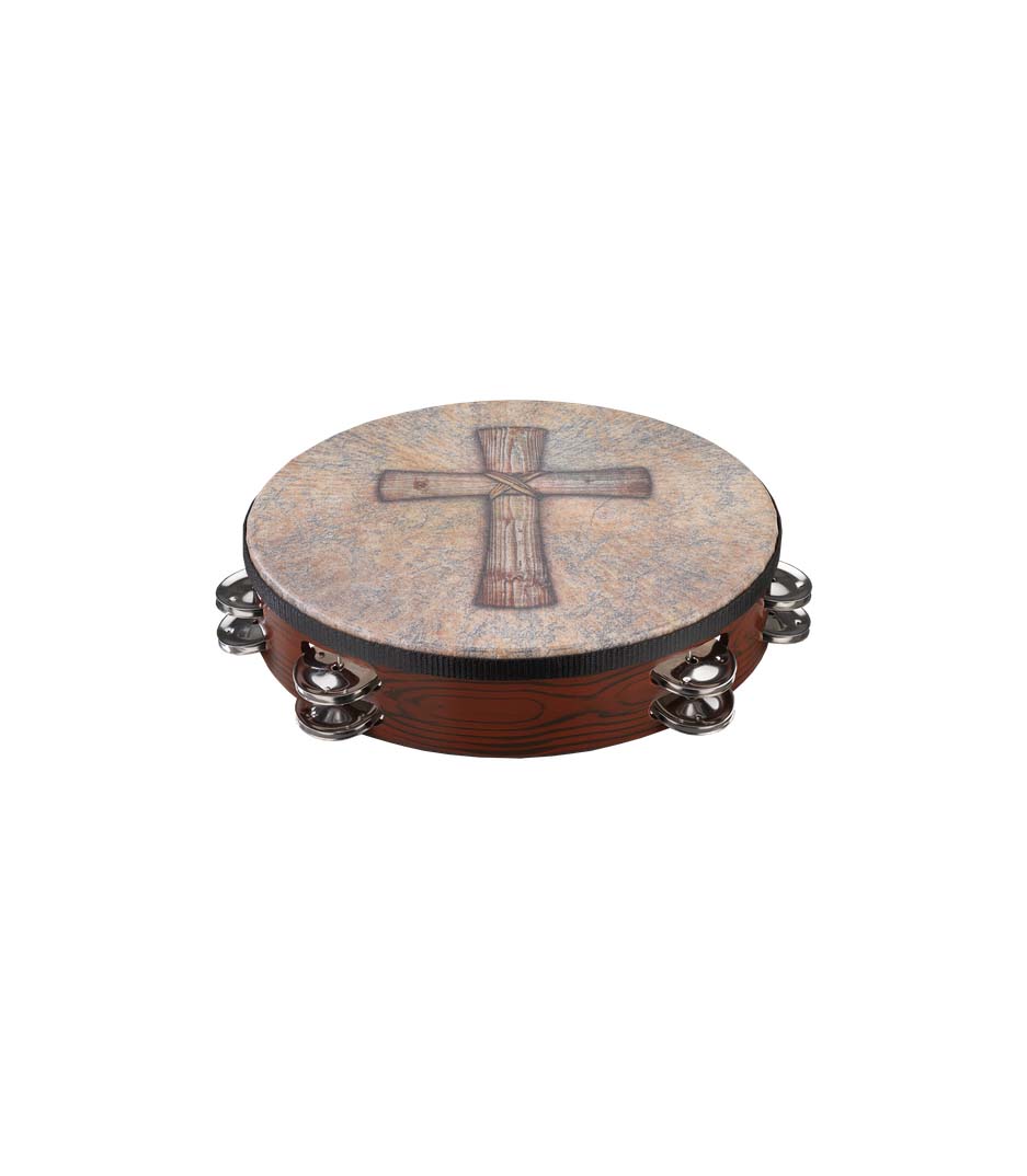 The valencia gospel tambourine produces a midrange pitch that cuts through any choir or music ensemble. Constructed with an acousticon shell, a pre-tuned nuskyn drumhead and a double-row 8 jingle set. The valencia gospel tambourine is ideal for all worship-based musical applications. Available in an antique dark brown wood grain finish