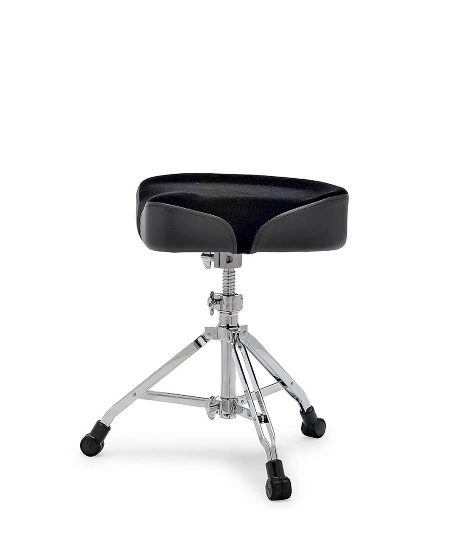 6000 hardware series throne saddle shape the professional’s preference and the advancing drummer’s dream, this series offers stage stability, unbeatable roadworthiness and an elegant, refined style. It features double-braced legs, rubber feet with a fierce grip on the floor, easy and secure height adjustment, and a throne top with comfortable padding and an ergonomic shape. All moving parts travel with the ease and smoothness professional musicians have come to expect from sonor