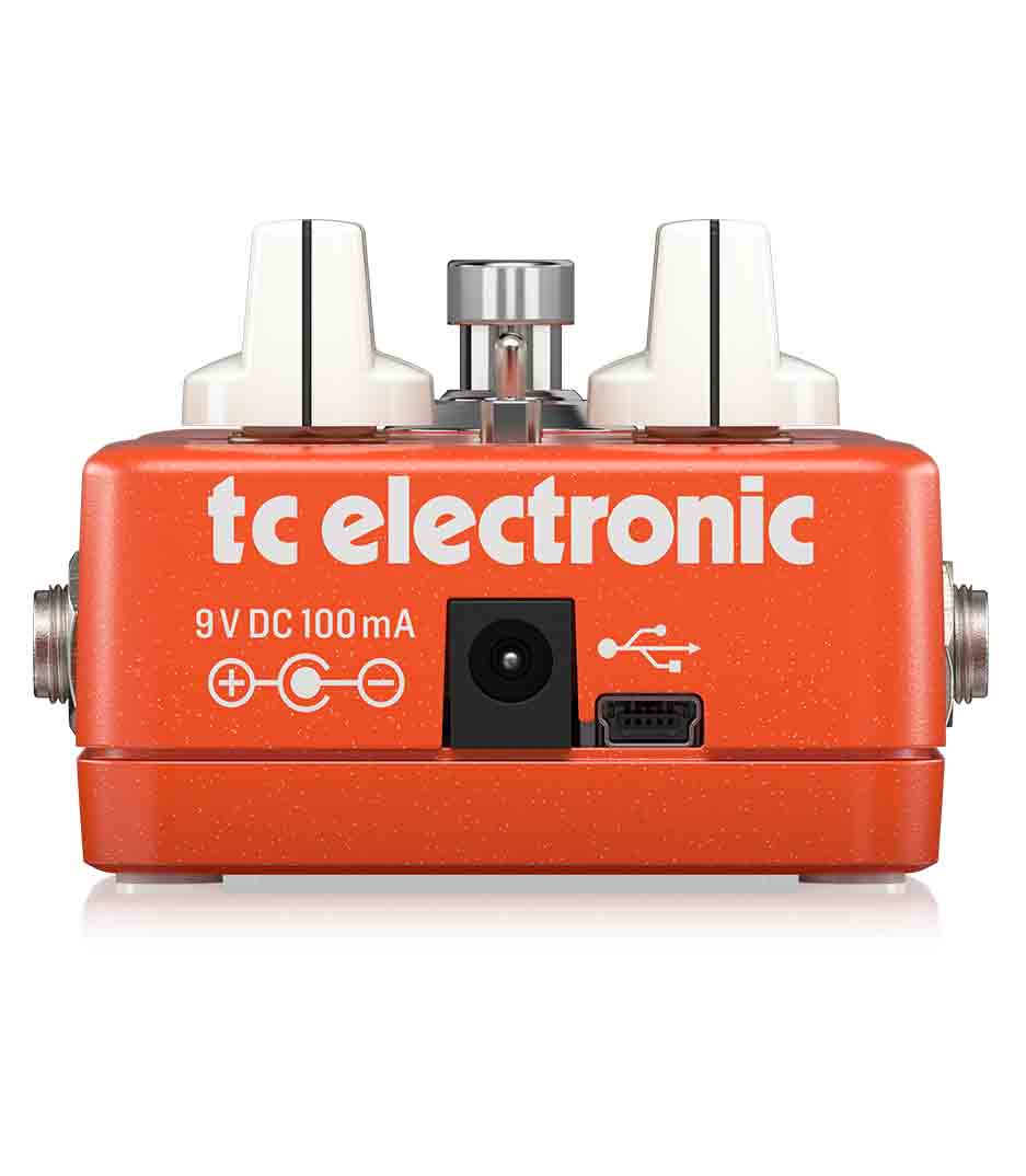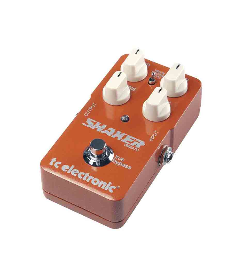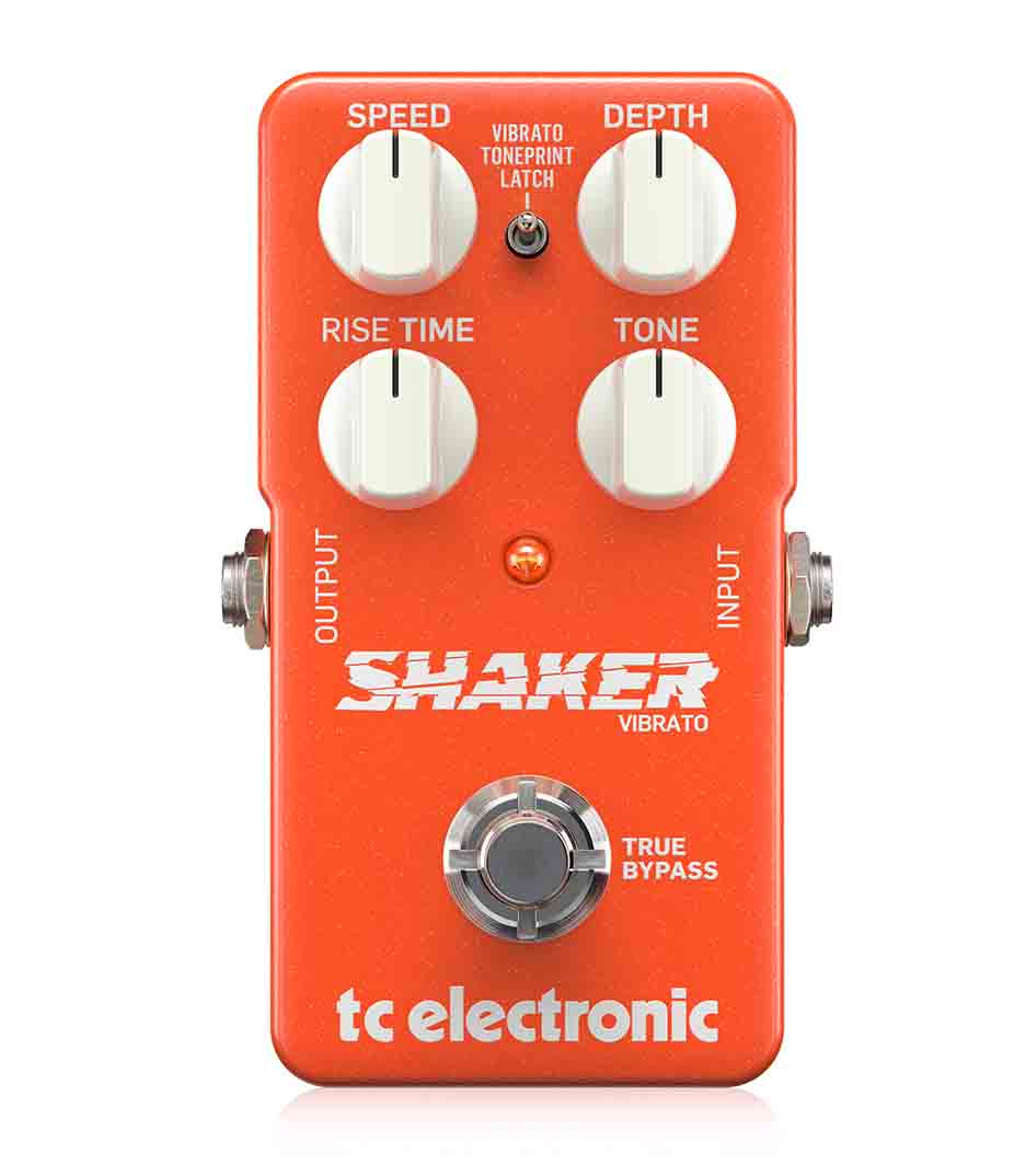Tc electronic packs a whole lot of vibe and character into their new shaker vibrato pedal. This amazing (and very pedalboard-friendly) little stompbox gives you classic vibrato effects that range from subtle to headspinning. Use the speed, depth, rise time, and level knobs to dial in your ideal vibrato effect, then hit the switch. Or, you can set the shaker to latch mode, which makes this pedal do its thing only when your foot is holding down the switch. That’s major live flexibility! But, tc didn’t stop there. They equipped the shaker with a usb connector and added toneprint technology. What’s toneprint? Believe it or not, toneprint allows you to download custom settings from some of the hottest guitarists out there. You’ll never get tired of this pedal